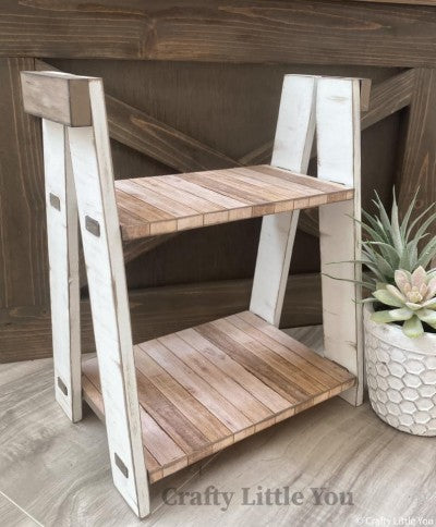 Unfinished kit measures 12.25" x 7" tall and includes wooden MDF: * (2) Shelf Pieces with Pegs * (4) Tapered Legs * (2) Hinge Covers