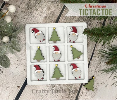 Board Base sold separately Unfinished kit measures apx. 1.5" and includes wooden MDF: * 5 Christmas trees * 5 gnomes with engraved faces *Tic-Tac-Toe Board sold separately.*