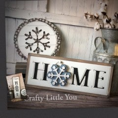 Home Sign Base sold separately Unfinished kit measures apx. 5” tall and includes 2-wooden MDF snowflakes