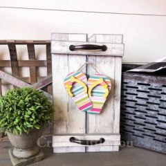 Base sold separately Unfinished kit measures apx. 5” tall and includes wooden MDF •2 flip flops and 2 overlays