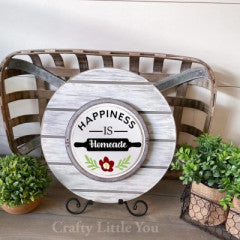 Circle Base sold separately Unfinished kit measures 6.75” And includes wooden MDF •circle with grooves •black vinyl AND stencil •1 Velcro